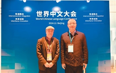 二〇二四年,吴宪(左)在北京参加世界中文大会。 受访者供图